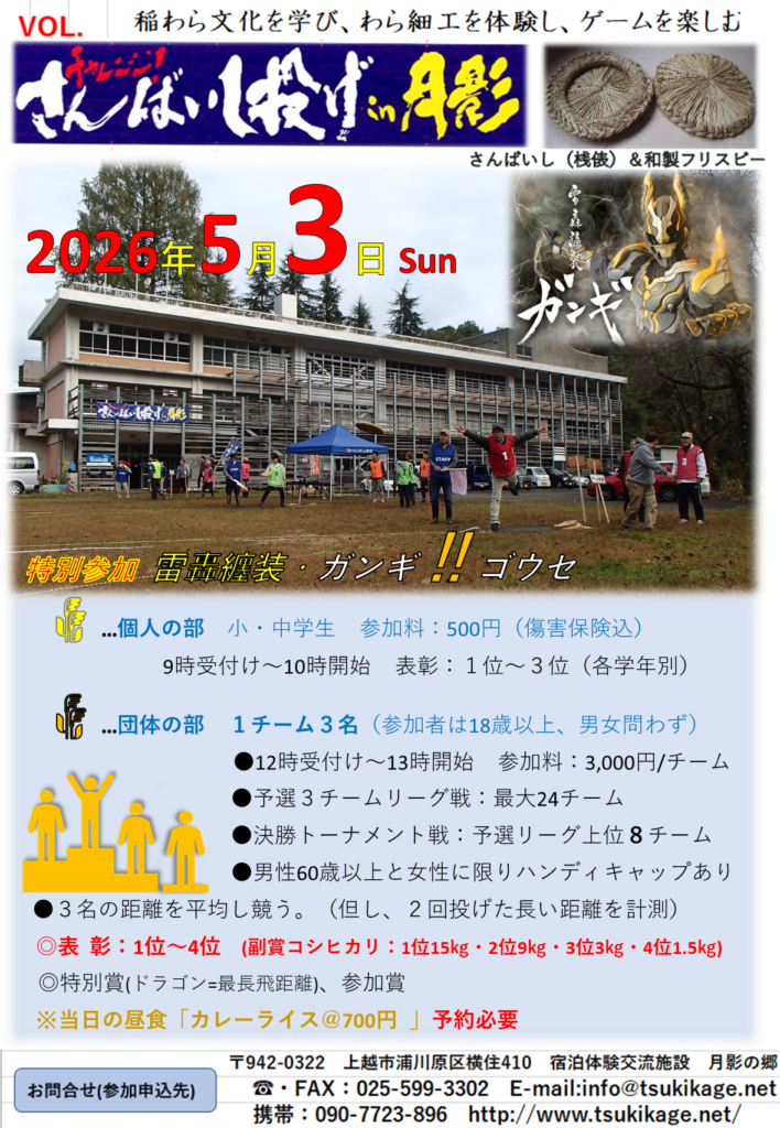 チャレンジ!さんばいし投げin月影今年も開催します!1位賞品は『お米15kg』お申込みお待ちしております。 (2026/03/17)